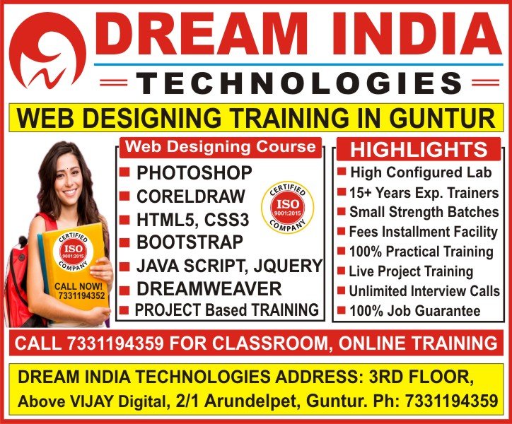 Web Designing Training in Guntur, Web Designing Course in Guntur, Web Designing Institutes in Guntur, Best Web Designing Training Institutes in Guntur – Dream India Technologies