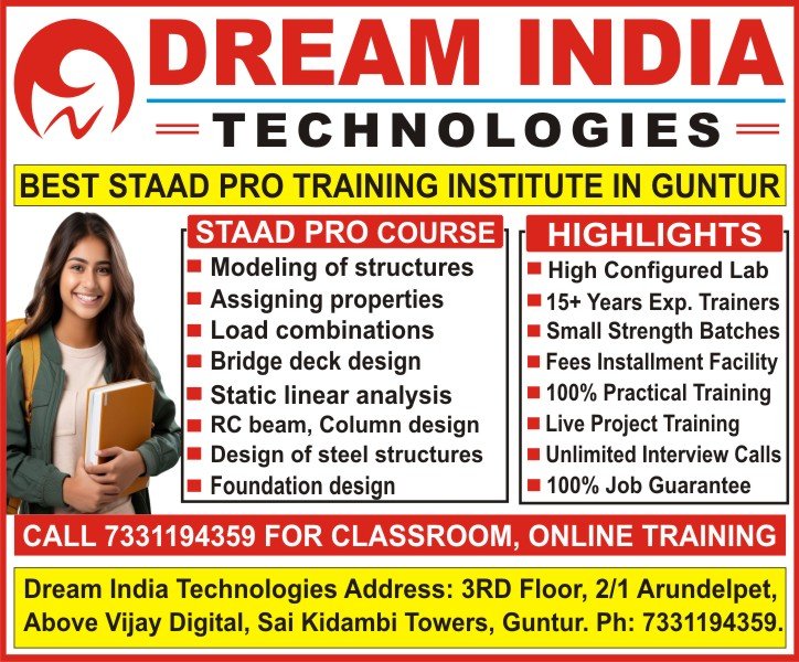 Dream India Technologies - Best Staad Pro Training Institute in Guntur Address, Phone Number, Office Timings