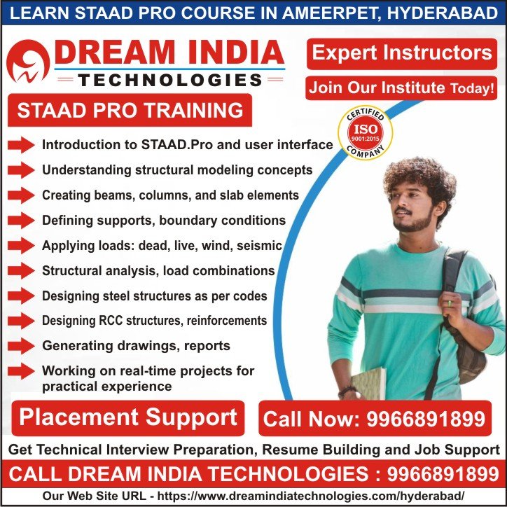 Looking for the best STAAD Pro course in Hyderabad? Join our institute and gain hands-on experience in structural analysis and design. We are one of the top STAAD Pro institutes in Ameerpet, providing expert-led training with real-time projects. Our comprehensive STAAD Pro course in Hyderabad covers beams, columns, slabs, foundations, and load applications. Recognized among the leading STAAD Pro institutes in Hyderabad, we offer flexible batches, updated course materials, and placement support. Enroll now to boost your skills and secure a successful career in structural engineering. Follow Us: